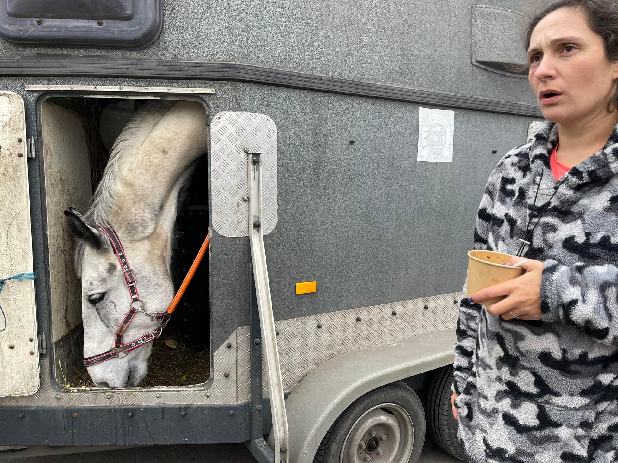 Tanya had to leave 18 of her other horses behind in the village outside Kyiv. She used to run a horse farm, teach local kids to ride horses. She was not gonna leave she says but when the shell exploded behind her house she knew it was time to go.